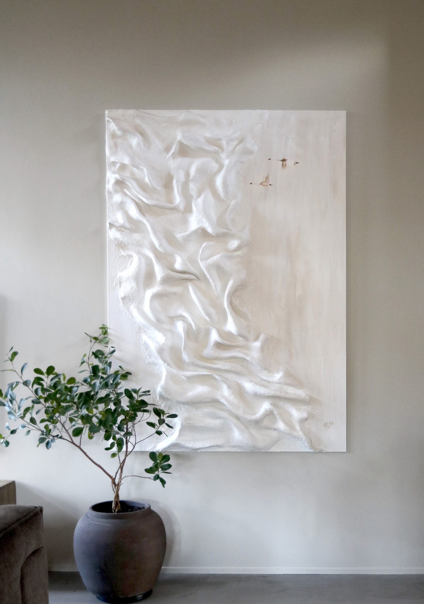 I create distinctive original pieces for both private homes and professional environments — ideal for elevating any space with refined, timeless art.